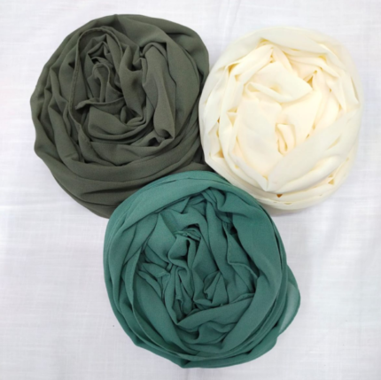 NatureEssence Chiffon Hijab Set – Olive, Ivory & Teal